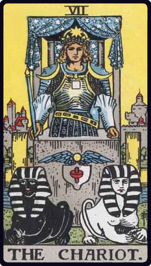 The Chariot : "맞서는 자", 목표를 향해 나아가는 상태, 과감함, 신념을 갖고 행동함, 절제 불가능, 개척, 의욕이 넘침